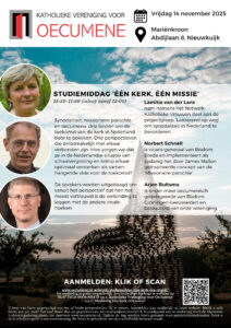 Op vrijdag 14 november 2025 houdt de Katholieke Vereniging voor Oecumene in Abdij Mariënkroon een studiemiddag met de titel ‘Één kerk, één missie’. Tijdens de bijeenkomst staat de vraag centraal hoe de begrippen synodaliteit, missionaire parochie en oecumene, zich tot elkaar verhouden en elkaar mogelijk kunnen versterken. Vicaris-generaal Norbert Schnell is één van de drie sprekers. Hij gaat in op de Missionaire Parochie zoals deze in het bisdom Breda vormt krijgt.