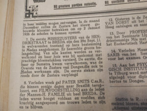 Het bisdomweekblad Sancta Maria van het Bisdom Breda maakte in 1925 in korte berichtjes melding van het vertrek van vier zusters van de franciscanessen van de heilige Elisabeth naar Indonesië.