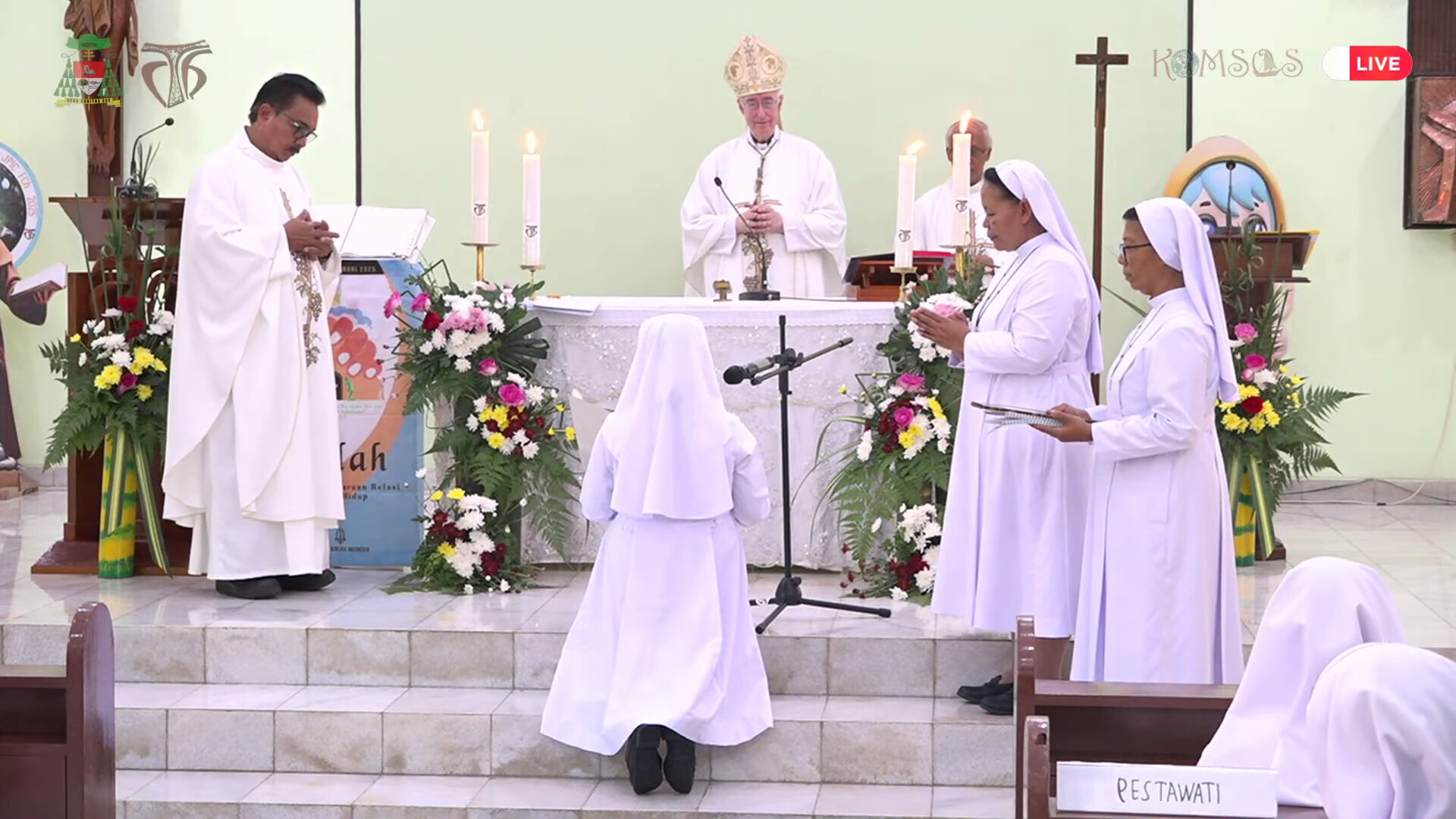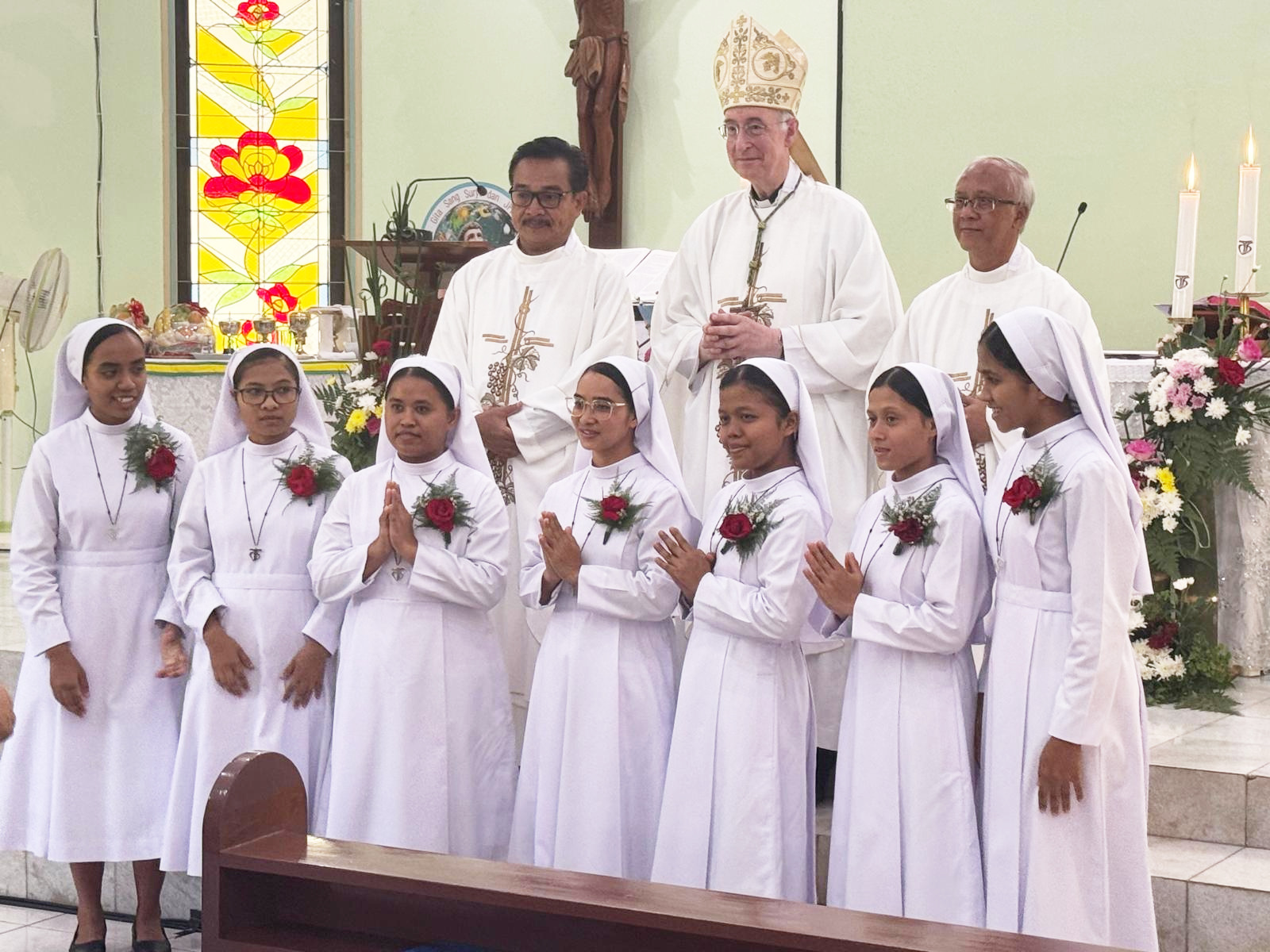 Het tweetal werd feestelijk onthaald bij de zusters franciscanessen van Charitas in Palembang. Bisschop Liesen droeg daar de heilige mis op waarin zeven zusters van Charitas hun eerste tijdelijke geloften aflegden. Het reisprogramma voert verder langs Medan, waar het Moederhuis van de zusters franciscanessen van de heilige Elisabeth is gevestigd.