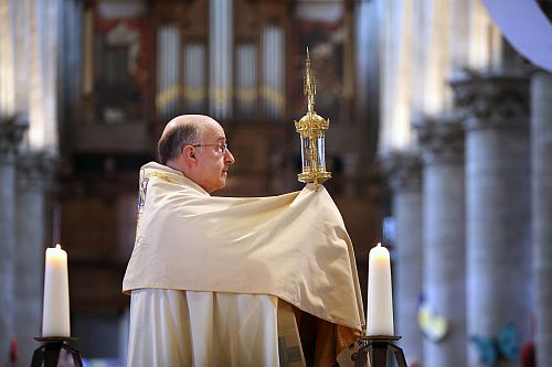- Bisschop Liesen zegent beeld in van de barmhartige Samaritaan