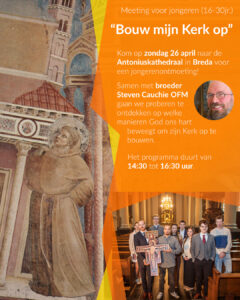 ‘Bouw mijn Kerk op’ is het thema van Roepingenzondag 2026 dat de Kerk wereldwijd viert op zondag 26 april 2026. Dit jaar is het ook de 800ste sterfdag van de heilige Franciscus van Assisi. Het thema voor Roepingenzondag is ‘Bouw mijn Kerk op’. Deze woorden verwijzen naar het visioen van de heilige Franciscus. Tijdens zijn gebed in het vervallen kerkje van San Damiano (1205) hoorde hij bij het kruis een stem die zei: ‘Franciscus, ga en herstel mijn huis.’ Aanvankelijk dacht hij dat hij het kerkgebouw moest herstellen. Later begreep hij dat zijn roeping veel verder reikte.